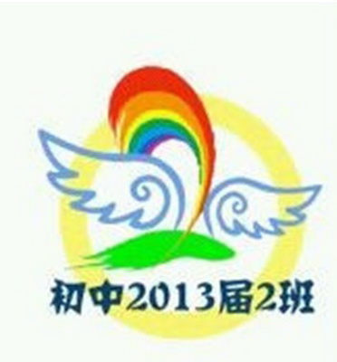 班徽是由彩虹、翅膀、草坪和光环四部分构成的。彩虹象征我们活泼阳光的形象;翅膀象征我们在学习天地翱翔;辽阔的草坪象征自由,也代表着我们2班同学见多识广;图中彩虹和草坪构成“2”字,在“2”上插对翅膀,象征2班是充满希望的,光环围绕2班,象征着正能量笼罩着2班。